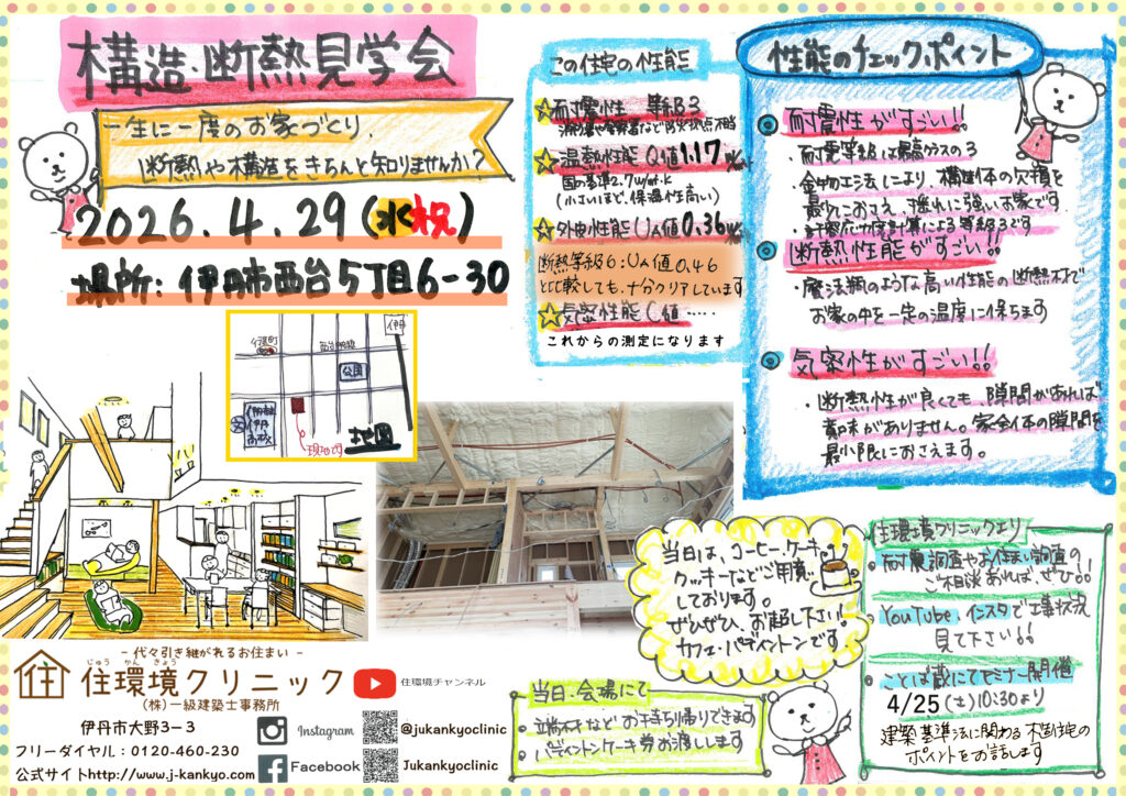 4月29日㈬祝伊丹市西台5丁目現場にて構造断熱見学会を行います!!